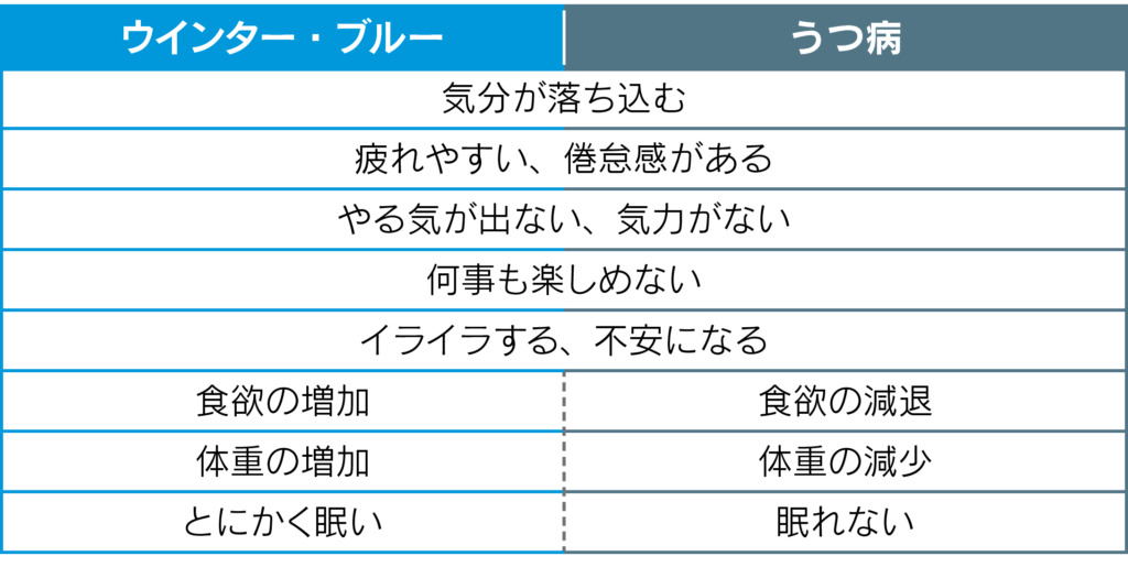 ウインター・ブルーは、一般的なうつ病とどこが違うのでしょうか。