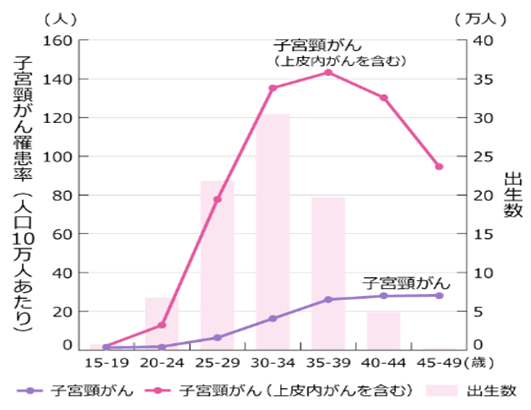 女性の出産年齢における年齢別子宮頸がん罹患率