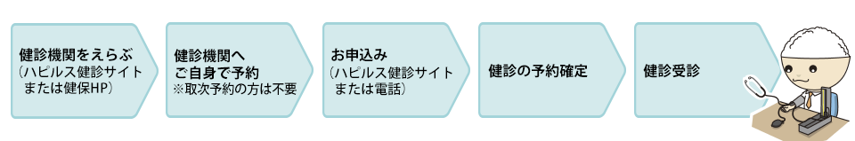 直接予約:ご自身で直接健診機関へ予約し、ハピルス健診サイトに予約内容を登録する方法