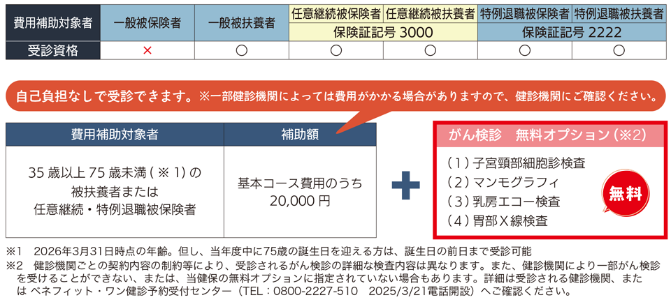| 人間ドック | 2025年3月21日(金) | 2026年2月28日(土) | 2025年4月1日(火)~2026年3月31日(火) |