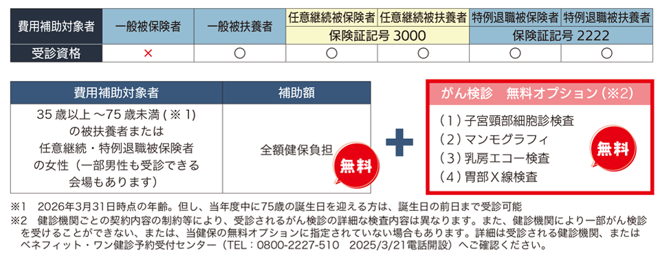 対象者 一般被保険者(※2)のうち年度末年齢30歳以上の女性希望者(受診日時点)