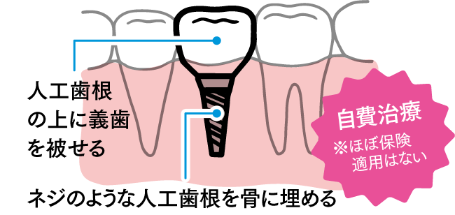 自分の歯と同じように噛むことができ、隣接する歯を削ることもありません。しかし、治療にかかる費用と期間のコストが大きくなります。