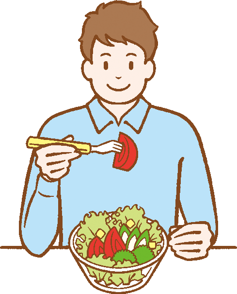 食事 糖質(炭水化物)をとりすぎないように注意し、野菜や肉・魚も含め