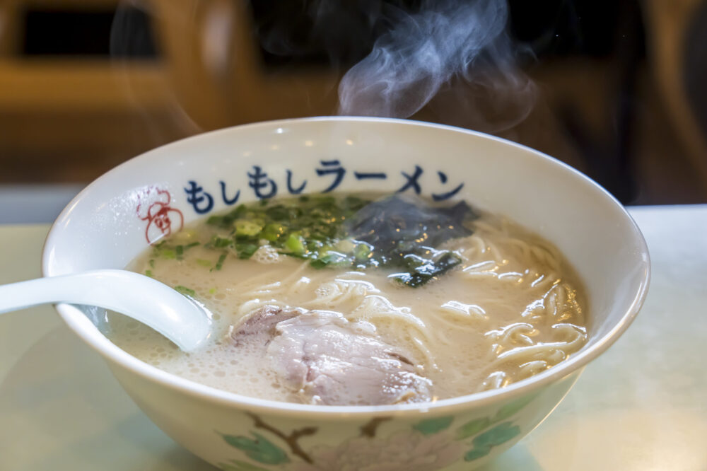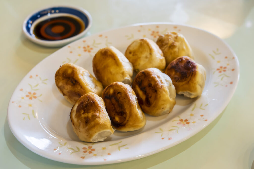 武雄のソウルフードともいえる人気の2 品。「もしもしラーメン」の由来は、開業時に店舗の隣が電電公社(現NTT)だったからだそう。焼餃子には地元のブランド豚「若楠ポーク」を使用。