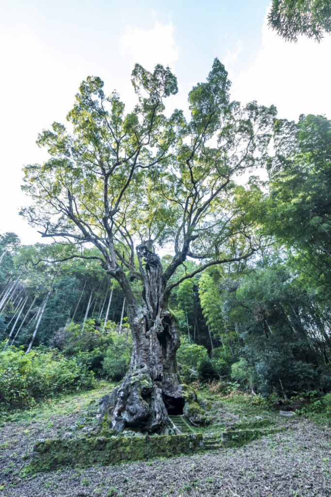 推定樹齢3000年の大楠。高さ27m、根回り26m、根元にある12畳ほどの空洞には天神様が祀られる。