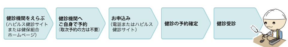 | 直接予約 | ご自身で直接健診機関へ予約する方法 (その後、予約内容をWeb登録またはベネフィット・ワンへ電話) |