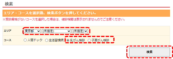| 巡回レディース健診 | 公共施設や巡回車など全国の会場で、生活習慣病健診B2と同じ検査項目の健診が受けられます。 男性も受診可能です。なお、女性限定の受診会場もあります。 |