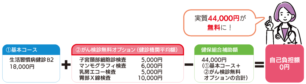 費用補助最大2万円に加えて、さらにがん検診オプションも無料!